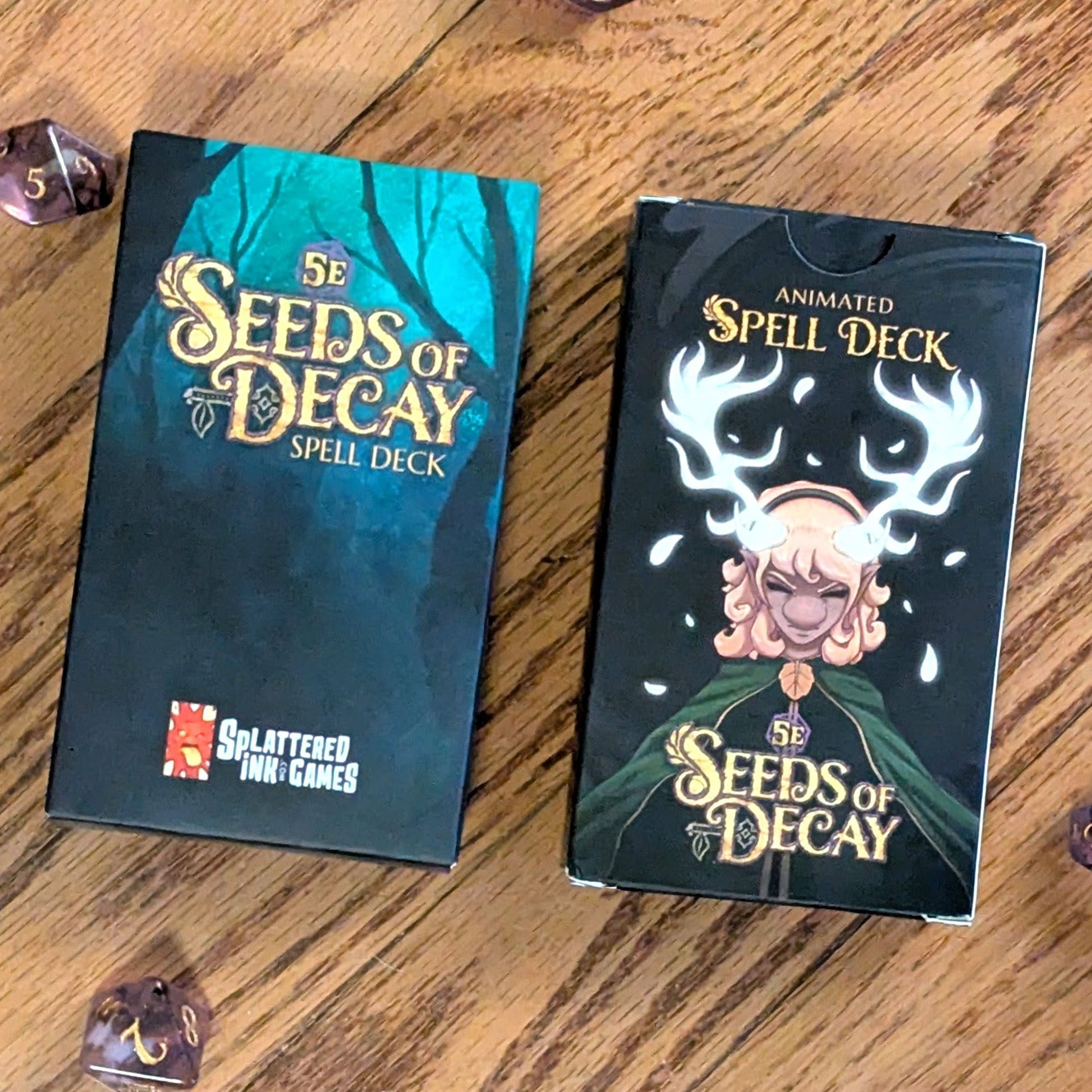 The animated spell cards include 30 lenticular tarot-size spell cards unique to Seeds of Decay, in their own tuck box.