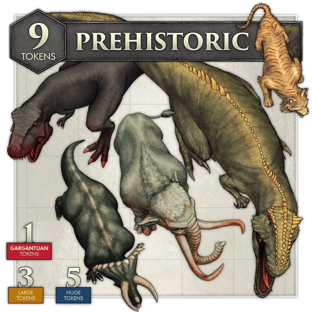 The Prehistoric set includes 9 acrylic tokens for your RPG Sessions.