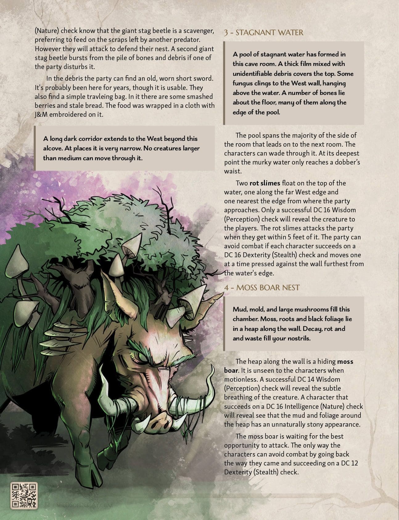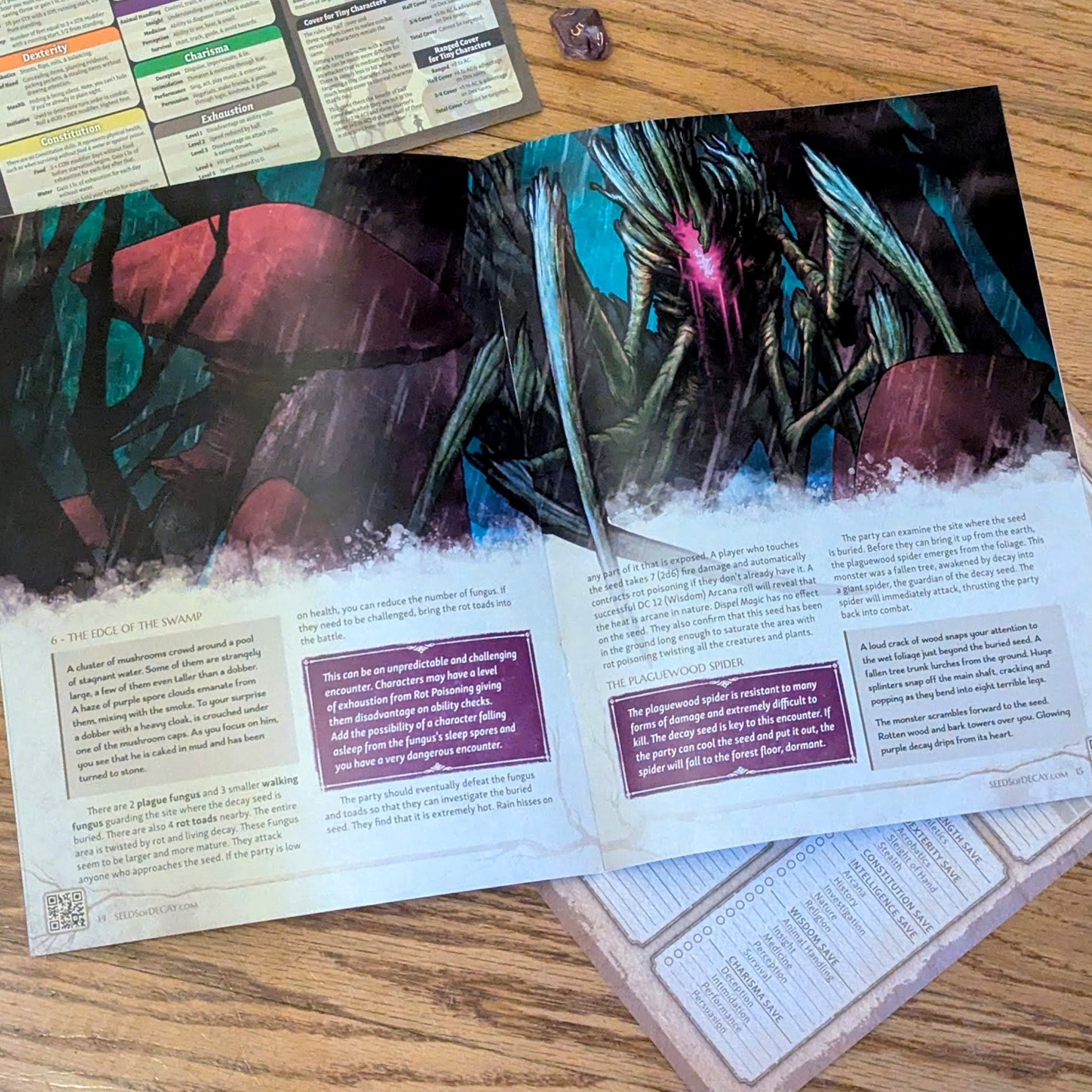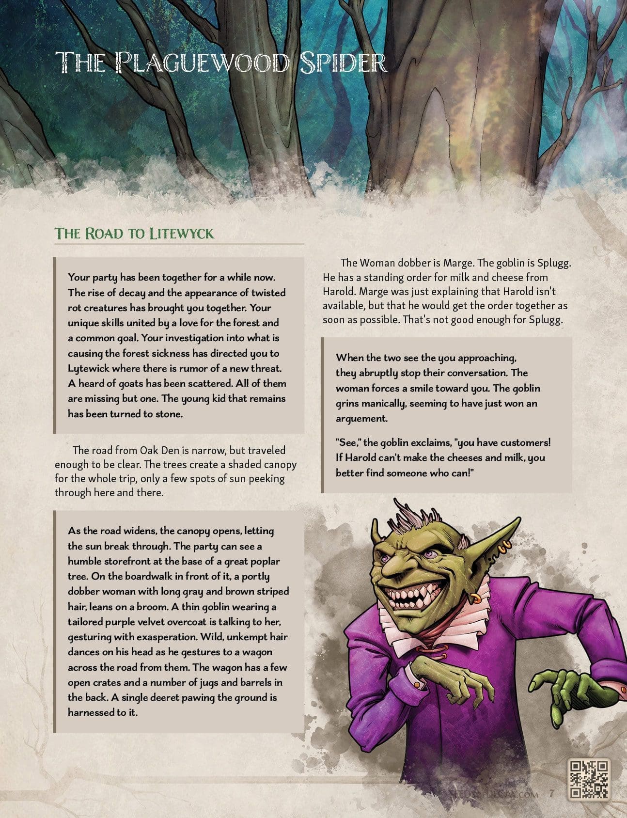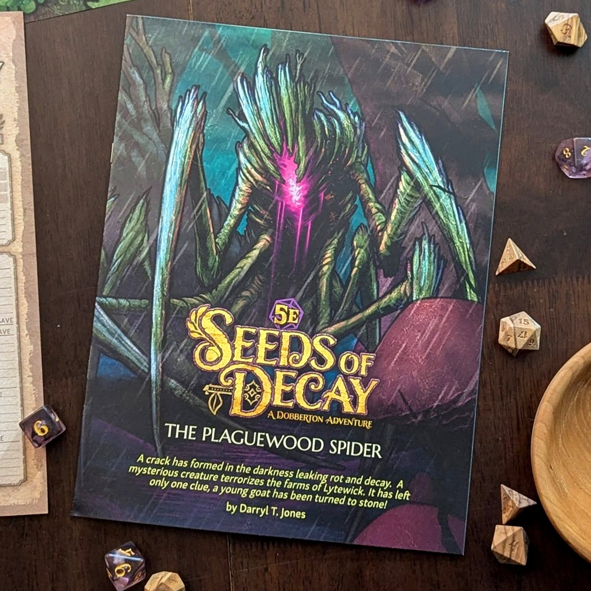 Face moss boars, rot creatures and fungal monstrosities as you fight to protect the Alwaysgreen Forest in this one-shot adventure for level 5 players! This adventure is a fantastic introduction to the world of Seeds of Decay & the Dobbers.
