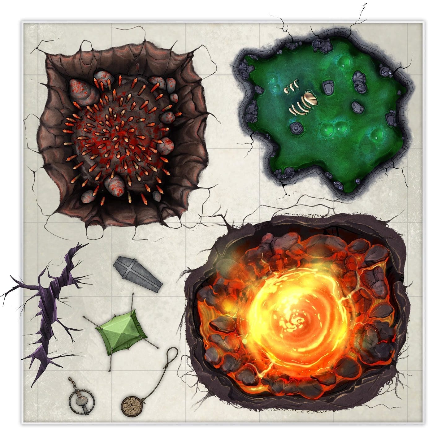 The Traps and Decor set includes 22 top-down tokens, each in three color variations, for use on your favorite VTT platform.