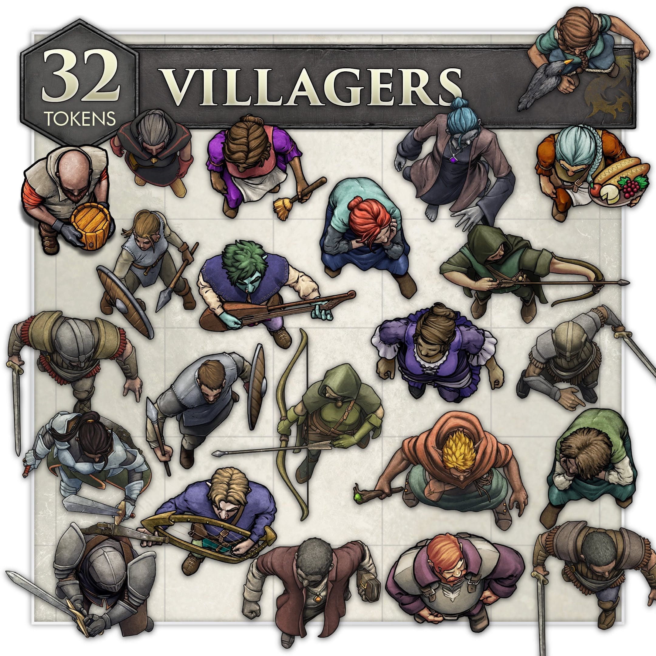 The Villagers set includes 32 acrylic tokens for your RPG Sessions.